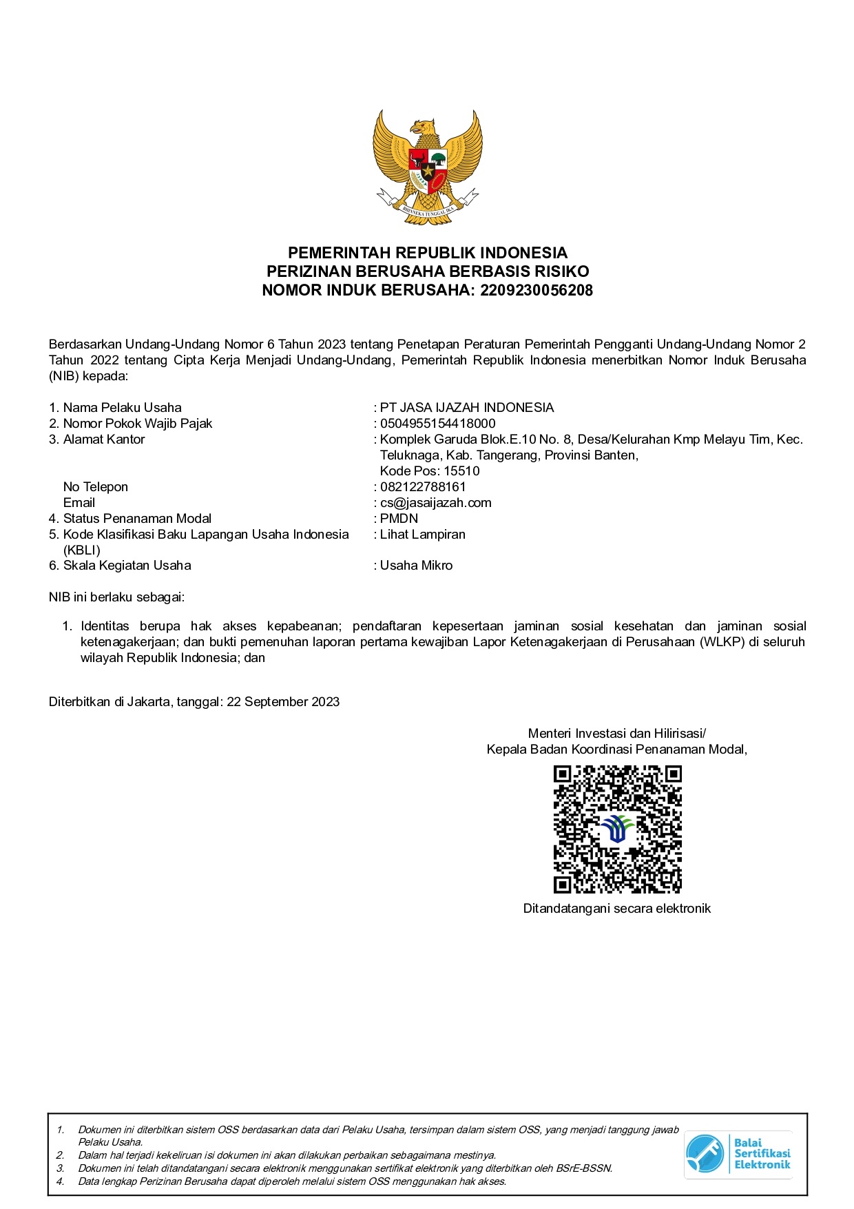 Sempet ragu minta bantuan biro jasa. Karna saya jg sbg konsultan perizinan, tapi kondisi saat itu tdk memungkinkan saya untuk mengurus sendiri dokumen. Tidak disangka dpt biro jasa yg bisa dipercaya dan kooperatif sekali. Next project mudah mudahan bisa kerjasama kembali. Terima kasih atas bantuannya. π